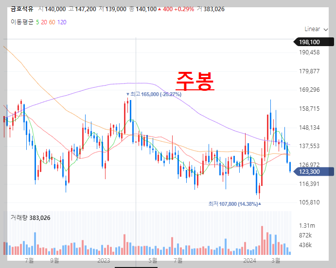그래서 그런지 이번 연도 최저점 10만 원 초반으로 가는 게 아닌지 걱정이 됩니다. (전 금호석유 주가 없습니다.. 충분 히 다른 곳에... 우우우웅분히.. 다른 곳에...!!!!ㅜㅜ)